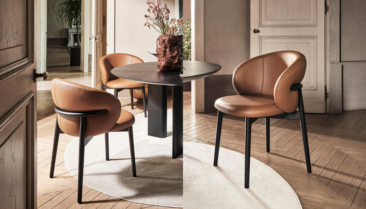 Always elegant yet comfortable, the Oleandro armchair is expanded with an additional model in the same line, featuring elastic webbing that supports the seat for enhanced comfort. It is available with either a wooden or metal frame, allowing a stronger visual statement within the interior.