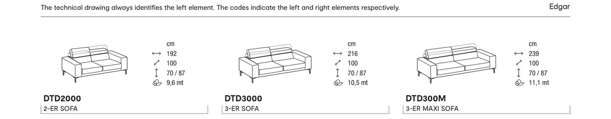 Edgar je pohovka, ktorá kladie dôraz na pohodlie. Vďaka svojmu hlbokému sedeniu je jej jedinečným prvkom opierka hlavy, ktorú je možné nakláňať podľa potreby. Hranaté, no jemne zaoblené tvary a množstvo možností čalúnenia z nej robia všestranný kus nábytku vhodný do moderných obytných priestorov.