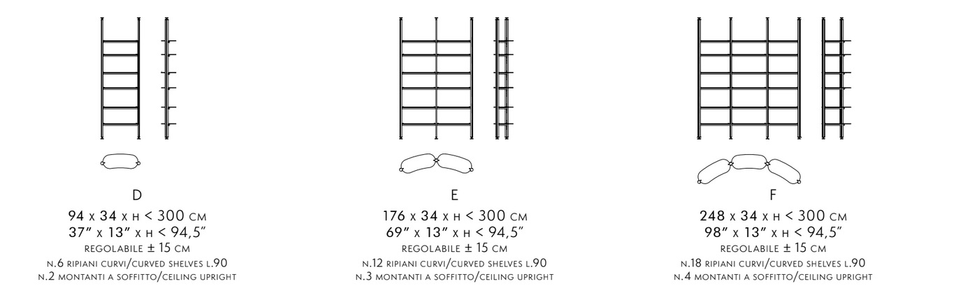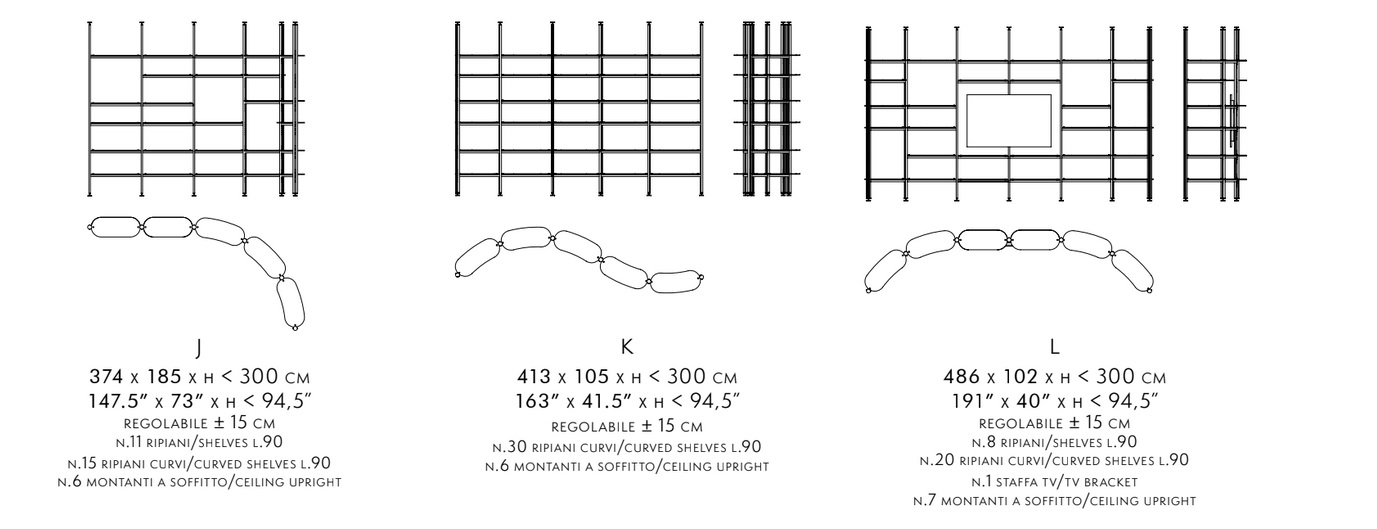 The Stem bookcase uses versatile, aesthetic, functional elements that expand its compositional range, with wooden uprights that create spaces to experience in absolute freedom. It can be used against a wall or in the middle of the room in its linear or rounded version, lightly defining environments with elegance and sophistication. Glass or wooden shelves and wooden containers enhance the compositions, leading to additional storage solutions and giving the bookcase greater functionality.